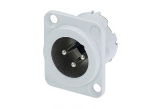 3-х пиновый панельный разъём XLR "папа" серии "DLX". Белый корпус, серебрянные контакты. Фланец "D" типа. Повышенная защита от радиоизлучения.
