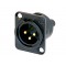 Панельный разъем XLR, 3-х контактный <штекер/папа>, DL-серия, фланец D-типа, черный хромированный металлический корпус, рассчитан для монтажа кабелей с диапазоном проводов от 0,14 мм² до 0,5 мм² (AWG 26 -20), контакты - покрытие золото, под винтовые клеммы.