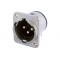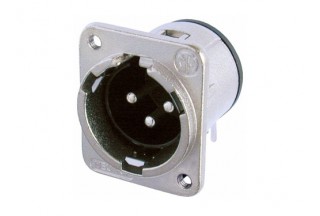 Панельный разъем XLR, 3-х контактный <штекер/папа>, D-серия, фланец D-типа, горизонтальная установка PCB, металлический никелированный корпус, контакты - покрытие серебро, монтажные отверстия M3, под пайку.