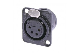 Панельный разъем XLR, 4-х контактный <гнездо/мама>, DL-серия, фланец D-типа, черный хромированный металлический корпус, контакты - покрытие серебро, под пайку.