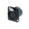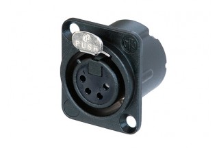 Панельный разъем XLR, 4-х контактный <гнездо/мама>, DLX-серия, фланец D-типа, черный компактный хромированный металлический корпус с двойным заземляющим контактом, обеспечивающий отличную защиту от RF, контакты - покрытие серебро, под пайку.