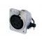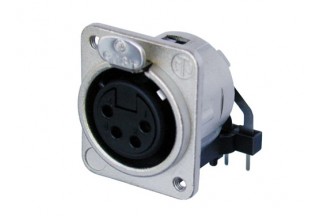 Панельный разъем XLR, 4-х контактный <гнездо/мама>, DL-серия, фланец D-типа, горизонтальная установка PCB, металлический никелированный корпус, контакты - покрытие серебро, монтажные отверстия M3, под пайку.