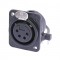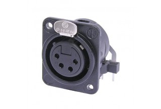 Панельный разъем XLR, 4-х контактный <гнездо/мама>, DL-серия, фланец D-типа, горизонтальная установка PCB, черный хромированный металлический корпус, контакты - покрытие серебро, монтажные отверстия M3, под пайку.