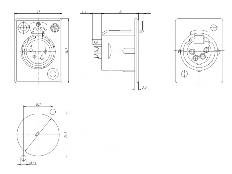Материал контактов: Латунь(CuZn39Pb3) с напылением золота 0.2 мкм и никеля 2мкм