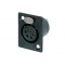 Панельный разъем XLR, 4-х контактный <гнездо/мама>, P-серия, фланец P-типа, черный компактный хромированный металлический корпус, контакты - покрытие серебро, под пайку.