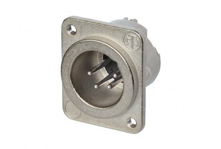 Панельный разъем XLR, 4-х контактный <штекер/папа>, DLX-серия, фланец D-типа, компактный металлический никелированный корпус с двойным заземляющим контактом, обеспечивающий отличную защиту от RF, монтажные отверстия M3, контакты - покрытие серебро, под пайку.