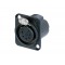 Панельный разъем XLR, 5-и контактный <гнездо/мама>, DLX-серия, фланец D-типа, черный компактный хромированный металлический корпус с двойным заземляющим контактом, обеспечивающий отличную защиту от RF, контакты - покрытие золото, под пайку.