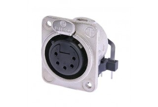 Панельный разъем XLR, 5-и контактный <гнездо/мама>, DL-серия, фланец D-типа, горизонтальная установка PCB, металлический никелированный корпус, контакты - покрытие серебро, монтажные отверстия M3, под пайку.