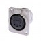Панельный разъем XLR, 5-и контактный <гнездо/мама>, DL-серия, фланец D-типа, металлический никелированный корпус, контакты - покрытие серебро, монтажные отверстия M3, под пайку.