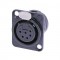 Панельный разъем XLR, 6-и контактный <гнездо/мама>, DL-серия, фланец D-типа, черный хромированный металлический корпус, контакты - покрытие серебро, под пайку.