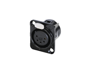 5-ти пиновый панельный разъём XLR "мама". Фланец "D" типа, корпус чёрный, контакты позолоченные. Аналог Neutrik NC5FD-L-B-1.