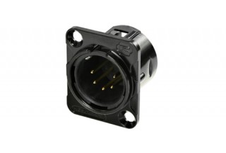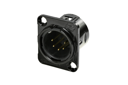 5-ти пиновый панельный разъём XLR "папа". Фланец "D" типа, корпус чёрный, контакты позолоченные. Аналог Neutrik NC5MD-L-B-1.