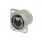 Панельный разъем XLR, 3-х контактный <гнездо/мама>, DLX-серия, фланец D-типа, компактный металлический никелированный корпус с двойным заземляющим контактом, обеспечивающий отличную защиту от RF, идеальное сочетание с кабельными разъемами серии EMC, контакты - покрытие серебро, удерживающая пружина вместо защелки, под пайку.