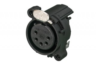 5-ти пиновый панельный разъём XLR "мама". Никелированный фланец "D" типа. Повышенная защита от радиоизлучения. Корпус черный.