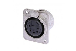 Панельный разъем XLR, 5-и контактный <гнездо/мама>, DL-серия, фланец D-типа, металлический никелированный корпус, контакты - покрытие серебро, монтажные отверстия M3, под пайку.