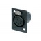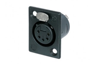 Панельный разъем XLR, 5-и контактный <гнездо/мама>, P-серия, фланец P-типа, черный компактный хромированный металлический корпус, контакты - покрытие серебро, под пайку.