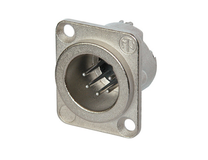 5-ти пиновый панельный разъём XLR "папа". Никелированный фланец "D" типа. Повышенная защита от радиоизлучения.