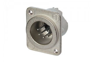 Панельный разъем XLR, 5-и контактный <штекер/папа>, DLX-серия, фланец D-типа, компактный металлический никелированный корпус с двойным заземляющим контактом, обеспечивающий отличную защиту от RF, монтажные отверстия M3, контакты - покрытие серебро, под пайку.
