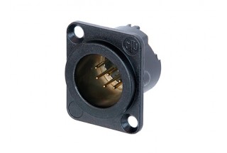Панельный разъем XLR, 7-и контактный <штекер/папа>, DLX-серия, фланец D-типа, черный компактный хромированный металлический корпус с двойным заземляющим контактом, обеспечивающий отличную защиту от RF, контакты - покрытие золото, под пайку.