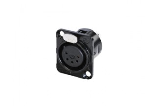 5-ти пиновый панельный разъём XLR "мама". Фланец "D" типа, корпус чёрный, контакты позолоченные. Аналог Neutrik NC5FD-L-B-1.