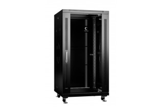 Шкаф монтажный телекоммуникационный 19" напольный для распределительного и серверного оборудования 22U 600x800x1166mm (ШхГхВ) передняя стеклянная и задняя сплошная металлическая двери, ручка с замком, цвет черный (RAL 9004)